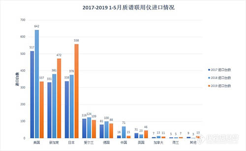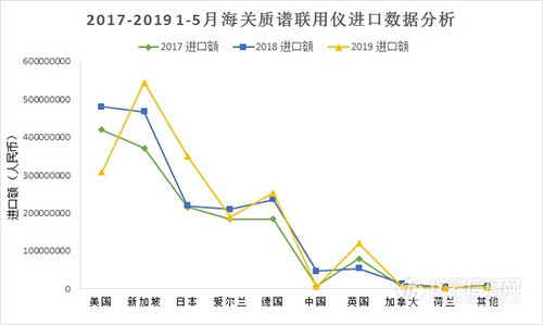 當(dāng)前,中國市場上的商品化的質(zhì)譜聯(lián)用儀還是以進口為主,質(zhì)譜聯(lián)用儀的進口情況在一定程度上,也反映了我國目前質(zhì)譜聯(lián)用儀整體市場的一些情況。從2018年3月,中美貿(mào)易戰(zhàn)打響,對整個科學(xué)儀器市場產(chǎn)生重大影響。質(zhì)譜聯(lián)用儀作為一類重要的科學(xué)儀器,在貿(mào)易戰(zhàn)中到底受到了怎樣的影響也備受關(guān)注。為此,儀器信息網(wǎng)特別對2017、2018年及2019年1-5月,海關(guān)質(zhì)譜聯(lián)用儀進口數(shù)據(jù)進行了匯總分析,為大家了解中國目前質(zhì)譜聯(lián)用儀市場做一個參考。