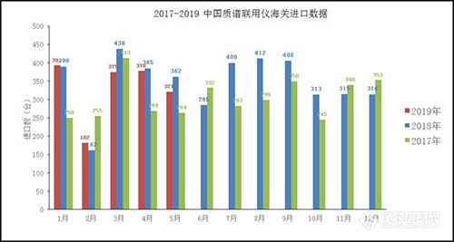 2017-2019(1-5月)質(zhì)譜聯(lián)用儀海關(guān)逐月進口數(shù)據(jù)