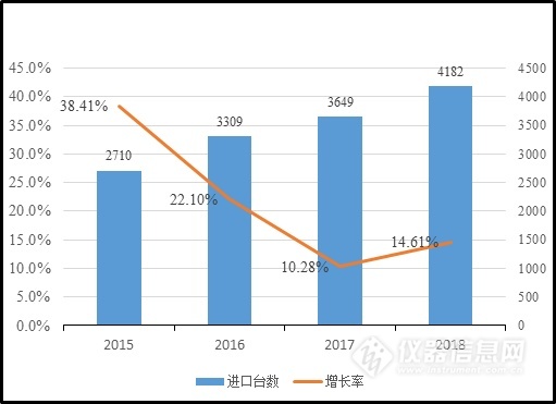 2015-2018年 質(zhì)譜聯(lián)用儀進口量及增長趨勢