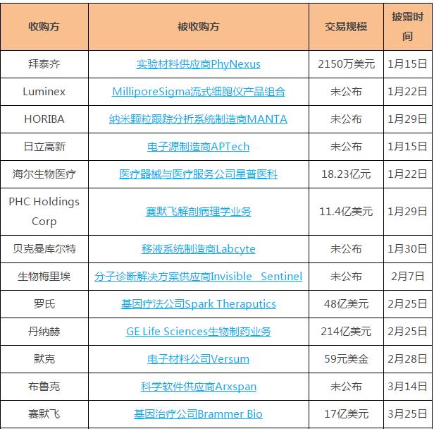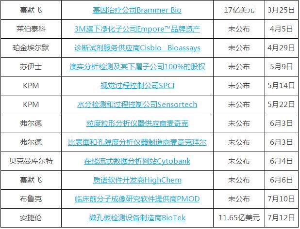 2019上半年儀器企業(yè)并購案一覽表