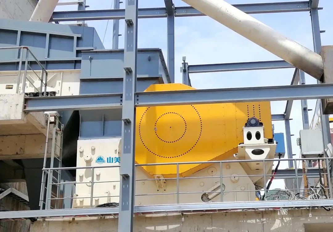 華新長陽項目使用山美JC663歐版顎式破碎機破碎125MPa白云巖,排料粒度小于300mm時,通過量達到1400t/h(含喂料機漏下的約150t/h)