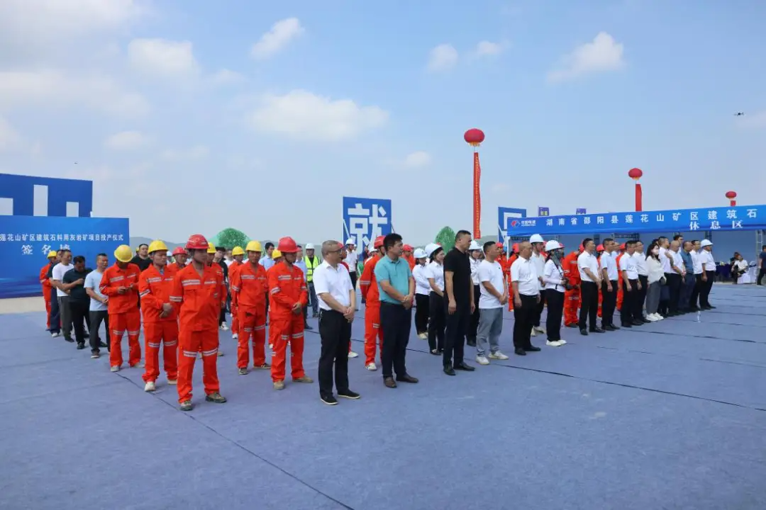 近日,湖南省邵陽縣蓮花山建筑石料用灰巖礦項目隆重舉辦了投產儀式,標志著湖南省綠色建材領域又一典范項目的正式啟動。上海山美環保裝備股份有限公司為該項目提供了2臺E-HSI5118A反擊式破碎機,承擔二破任務,31.5-50mm規格產量可達600t/h。