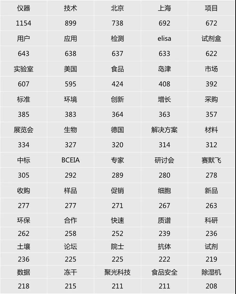 從統計中,我們還看到了用戶對于儀器創新的期盼。快速、高效、穩定是分析儀器始終追求的優質性能,隨著現場檢測需求的增多,便攜式、自動化、手持式、實時、智能化被提到的頻率越來越高,廠商在宣傳新品時也往往用到這類詞匯。