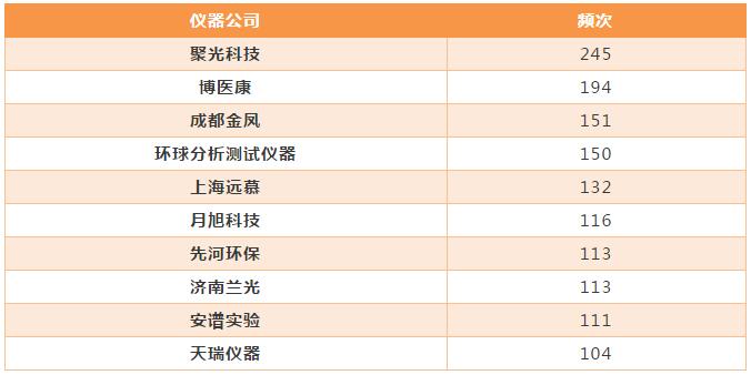 國內儀器公司活躍指數TOP10