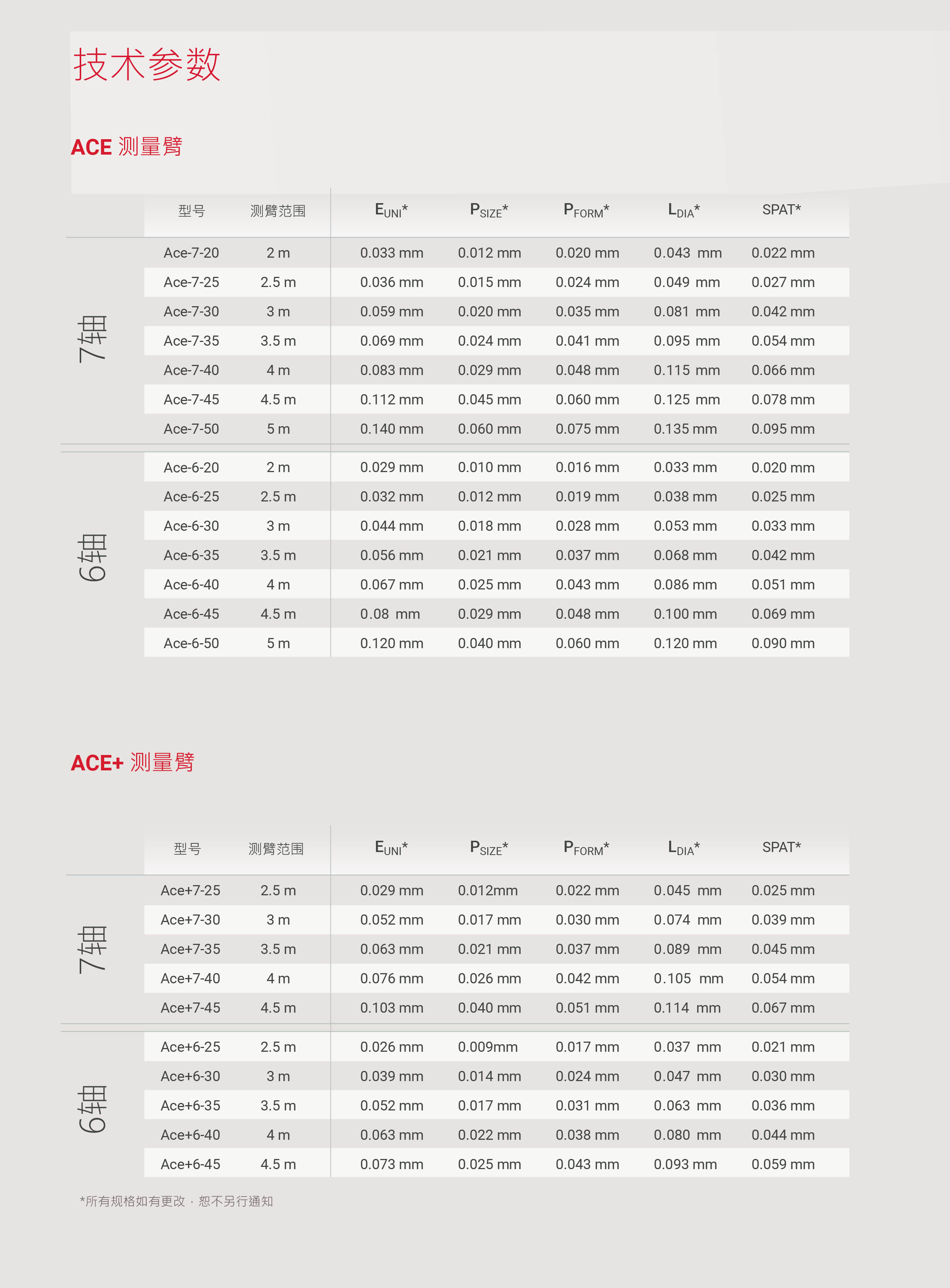 ACE系列包括兩種型號:ACE和ACE +測量臂。ACE +支臂采用最新的編碼器技術,還擁有先進的校準方法,可確保出色的性能。