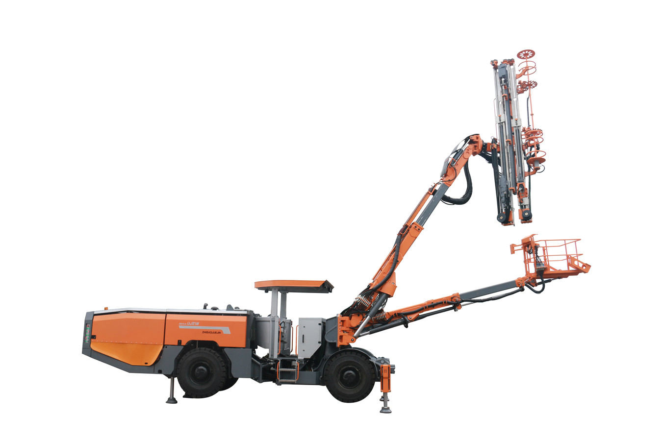 一臂一平臺設(shè)計,使此錨桿鉆機具備更多功能,除主工作臂實現(xiàn)鉆錨注一體化施工外,服務(wù)平臺可用于測量,補充錨桿、輔助安裝錨桿、注漿、撬毛等,一機多用。